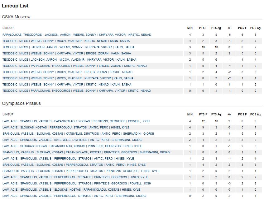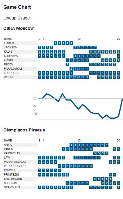 Olympiakos was 19-4 with Spanoulis-Sloukas-Perperoglou-Antic-Hines. This is the typical 2nd unit, with V-Span.
